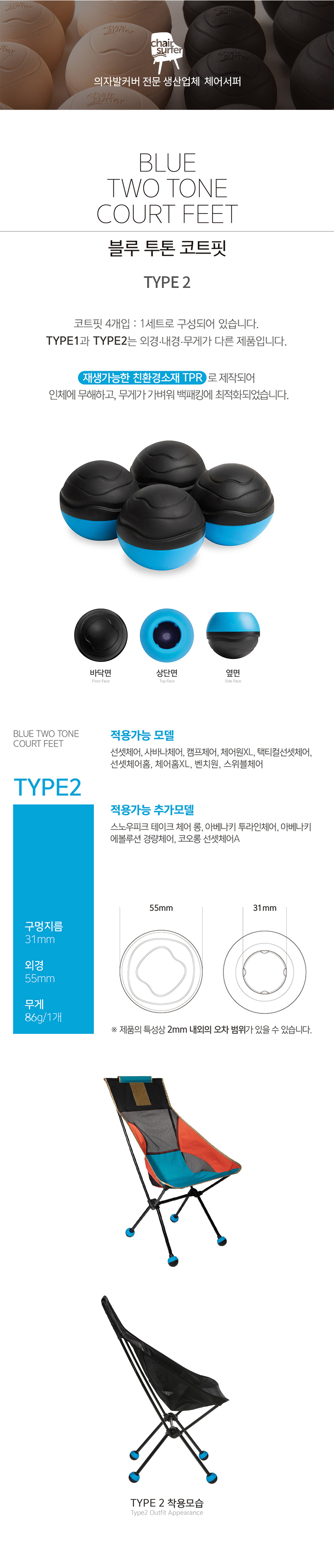 "국산 체어서퍼의 다양한 캠핑의자 의자발커버 / 의자발캡 상품을 소개합니다!"