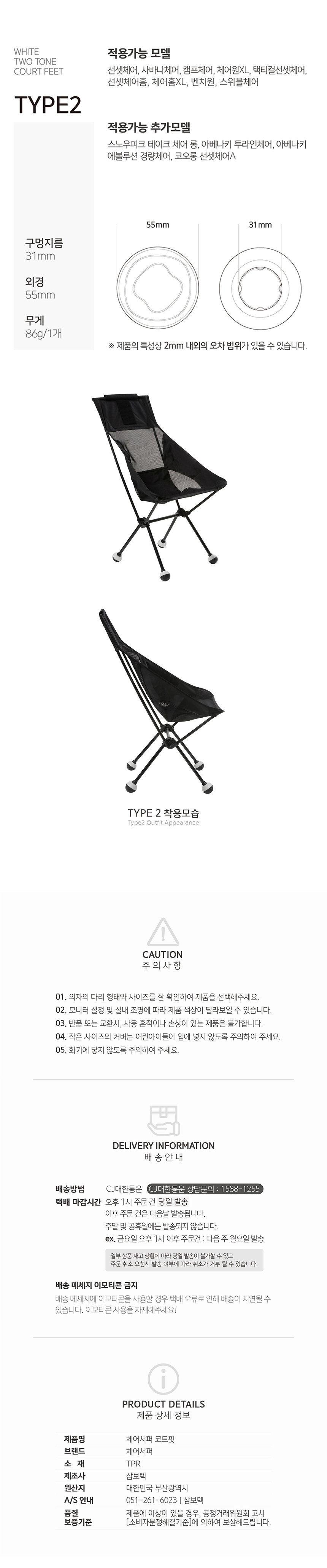 체어서퍼 화이트 투톤 코트핏 캠핑의자발캡 4개입(체어 1개용) 국내 생산
