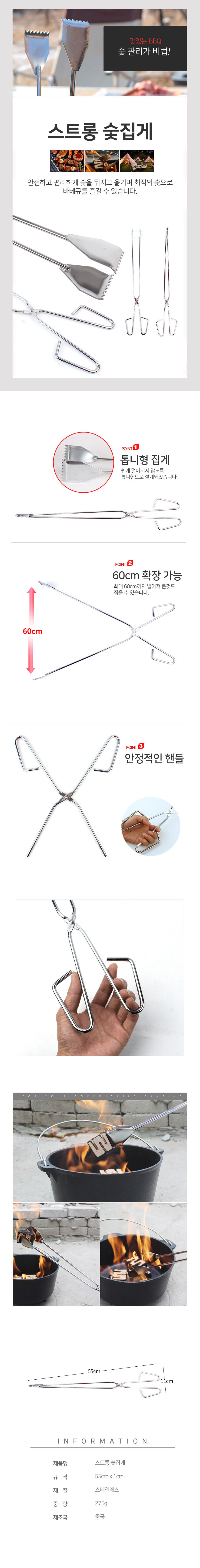 톱니형 스텐 숯집게-약55cm 숯불