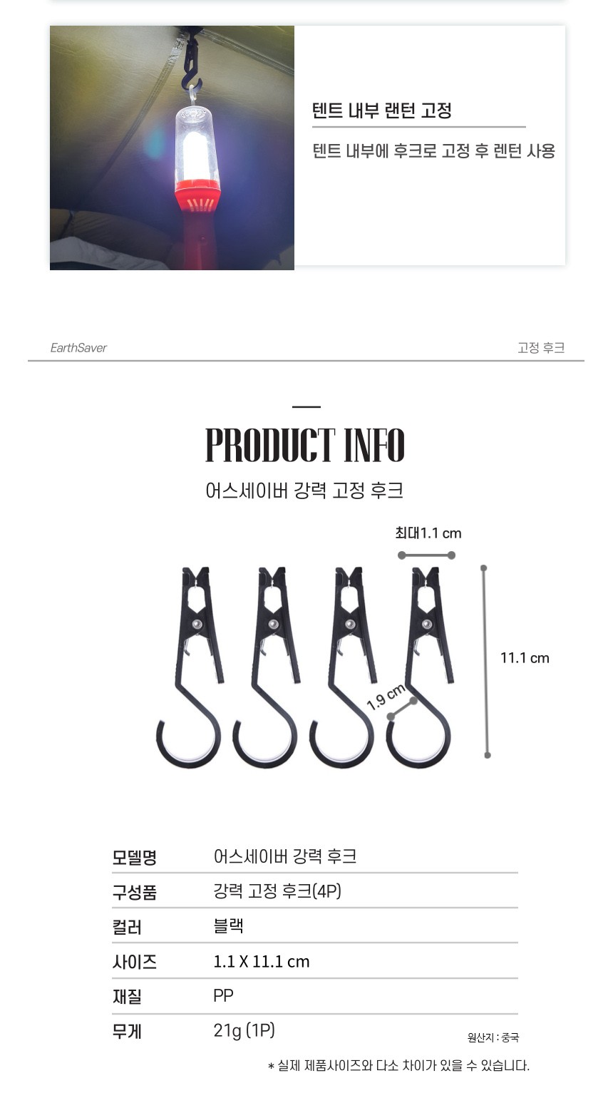 어스세이버 강력 후크 캠핑용 고리 클립 4P 이미지/