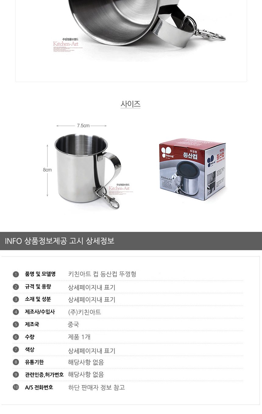키친아트 컵 등산컵 뚜껑형 이미지/