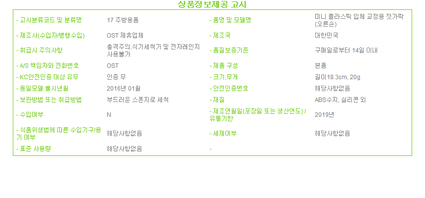 젓가락 플라스틱 입체 교정용 오른손 어린이수저