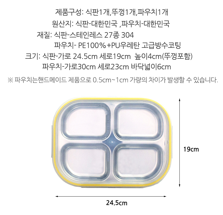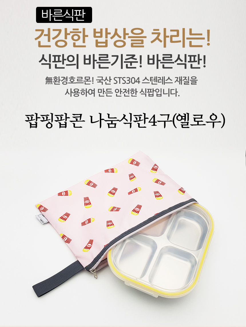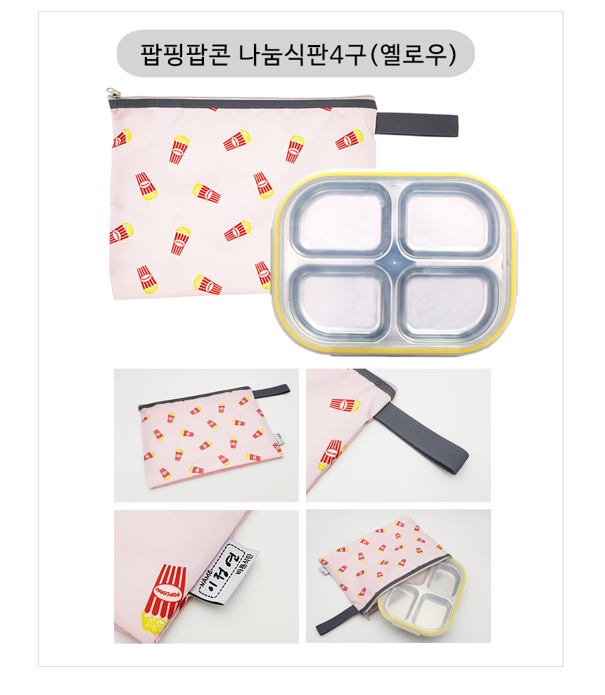 팝핑팝콘 옐로우 4구 4절 다이어트 찬합 도시락 식판