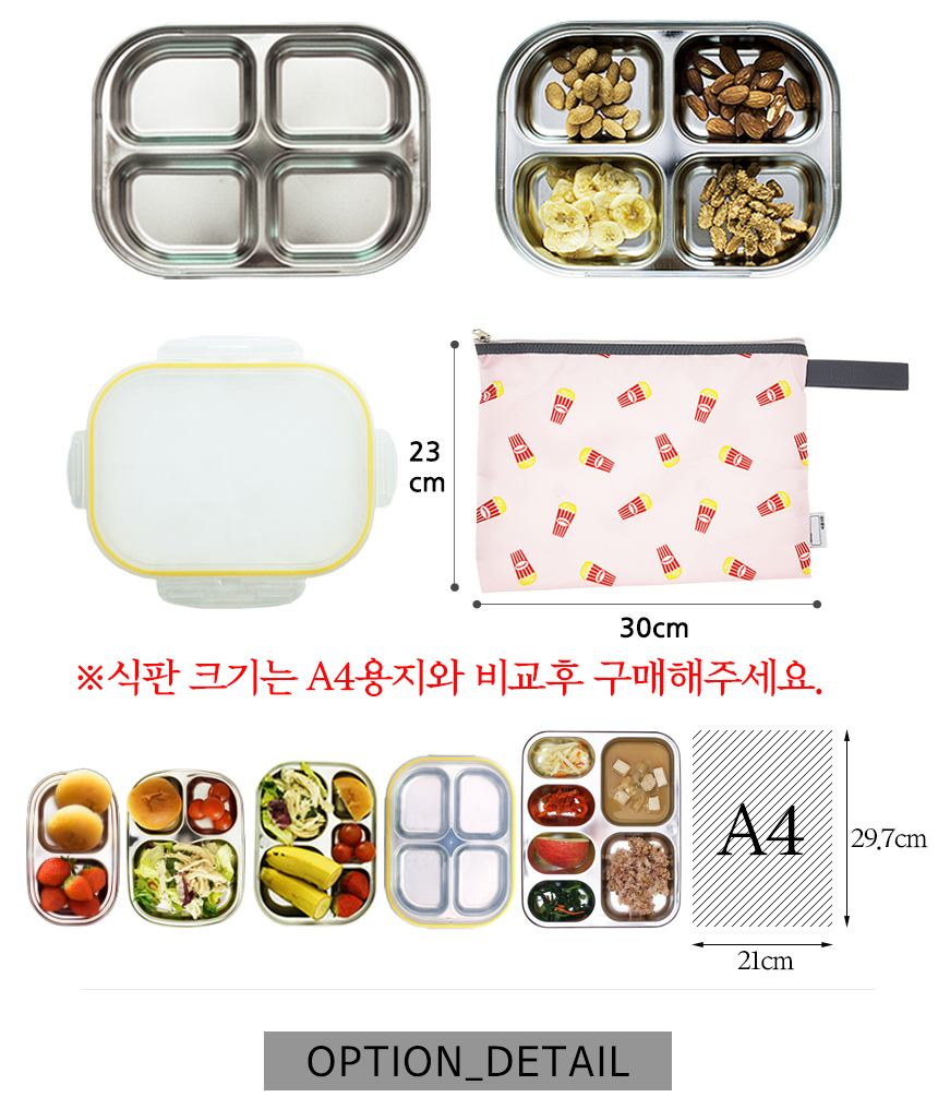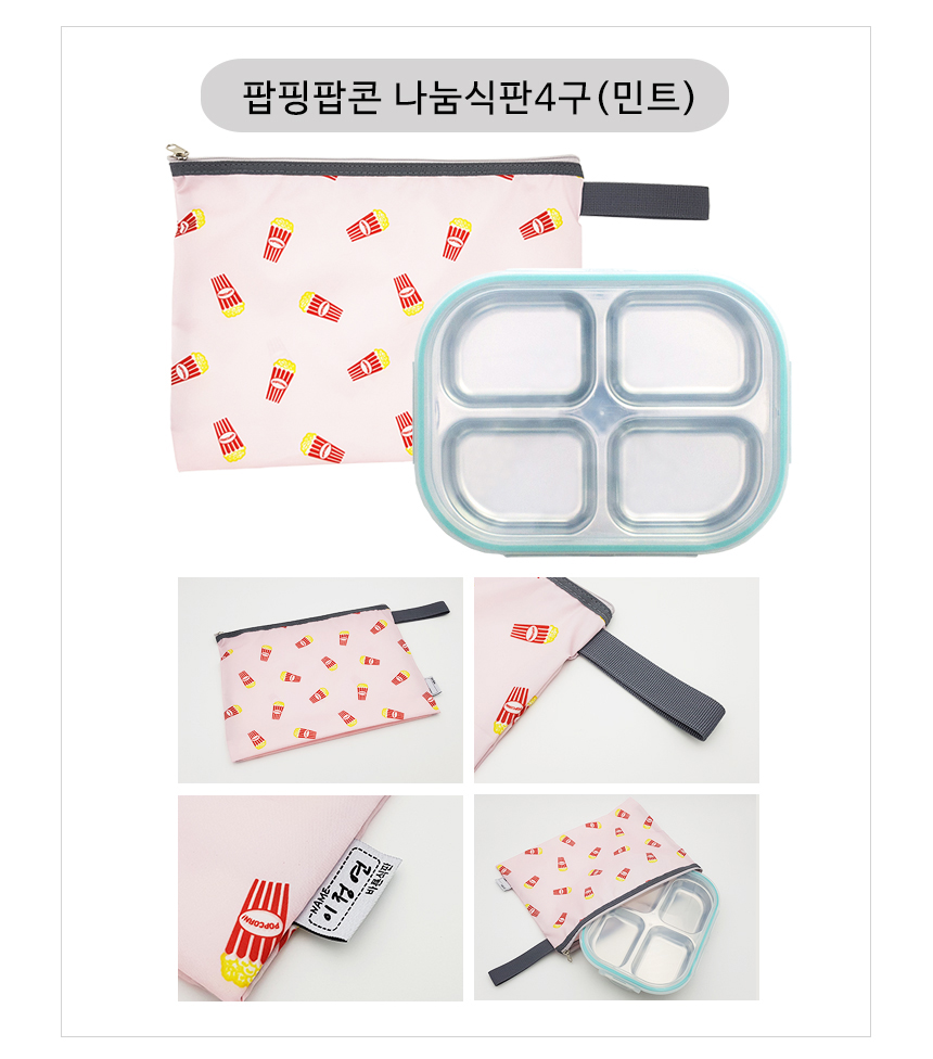 팝핑팝콘 옐로우 4구 4절 다이어트 찬합 도시락 식판 이미지/