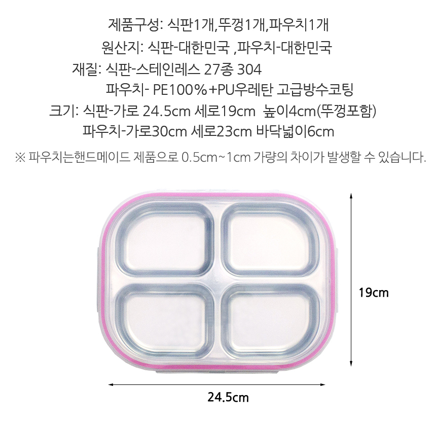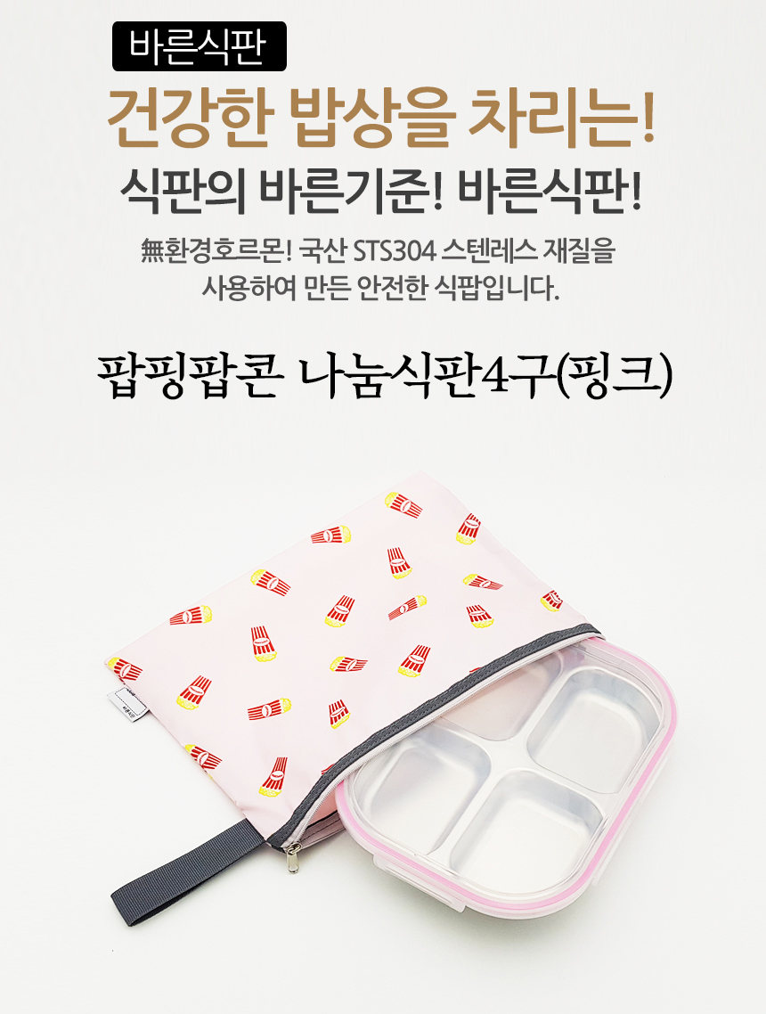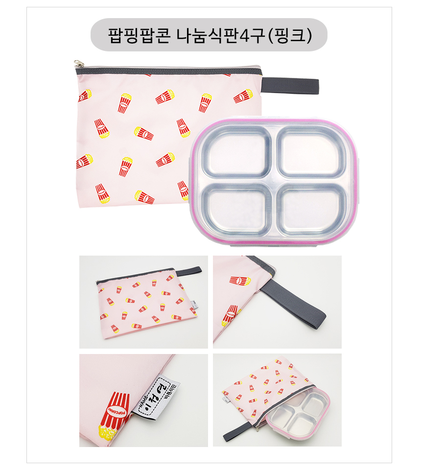 팝핑팝콘 핑크 4구 4절 다이어트 찬합 도시락 식판