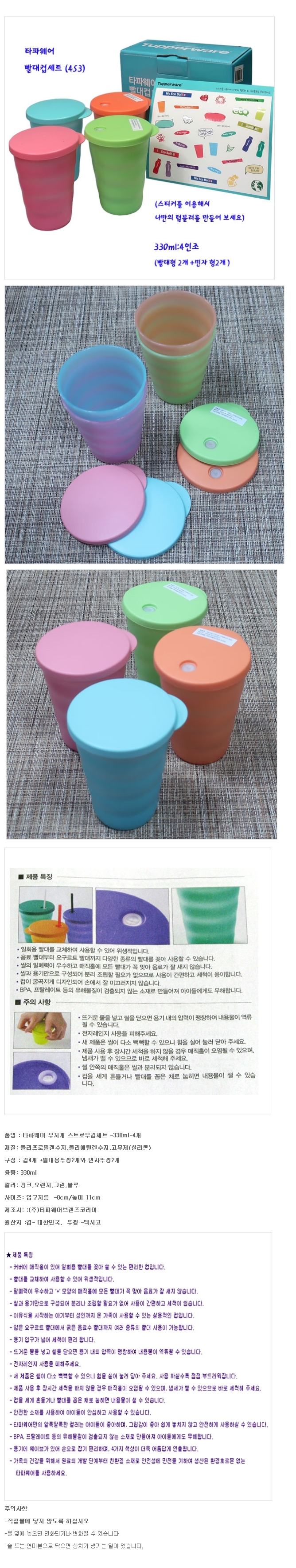 타파웨어 빨대컵 4세트 혼합형 330ml 물컵 텀블러 이미지/