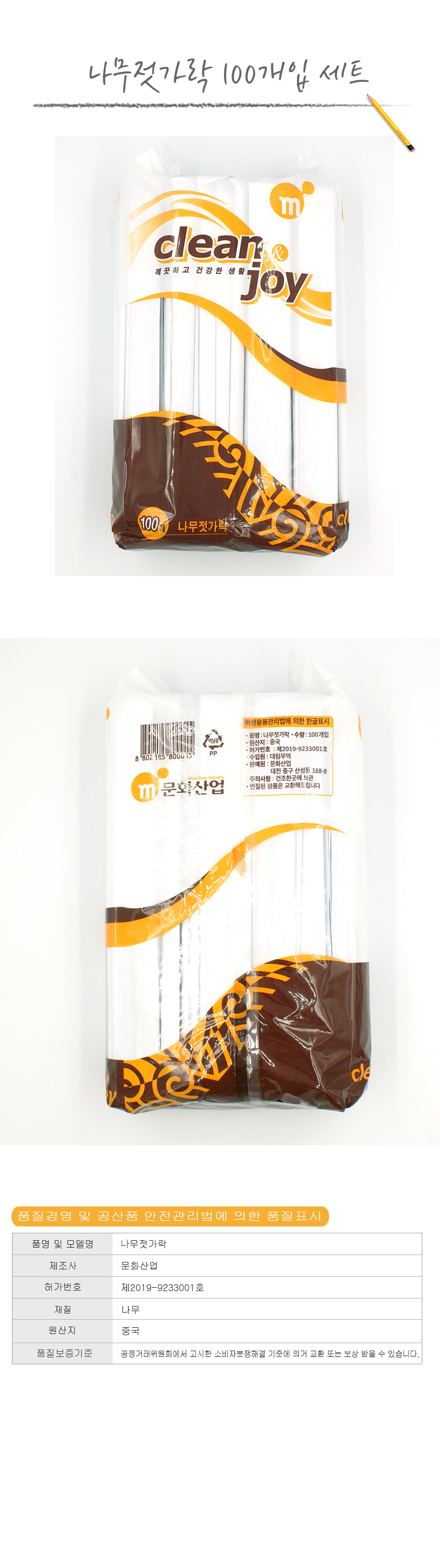 나무젓가락100개입 일회용젓가락 나무젓가락 젓가락 이미지/