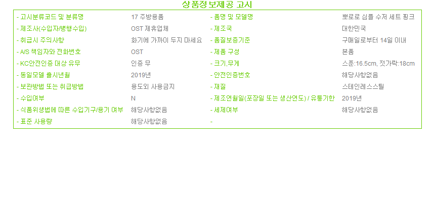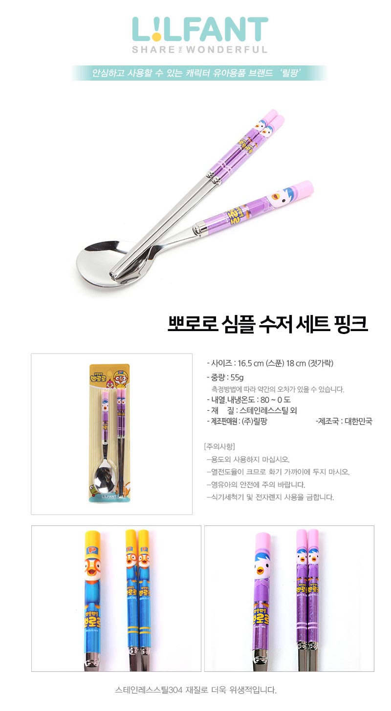 뽀로로 심플 수저세트 핑크 유아식기