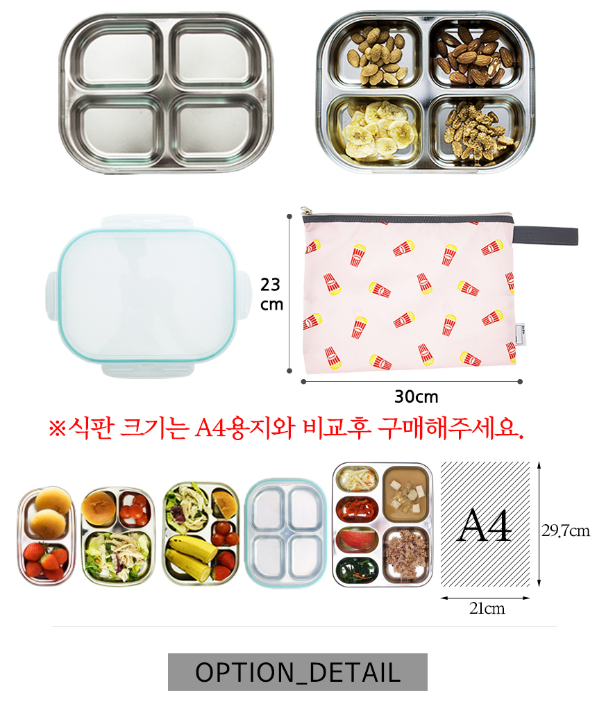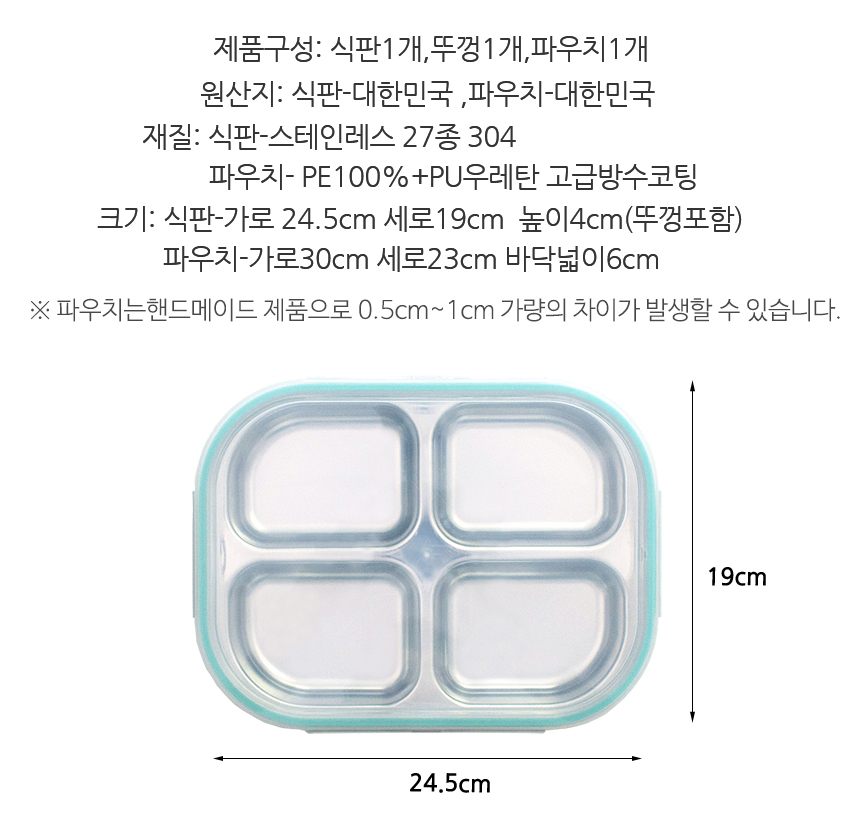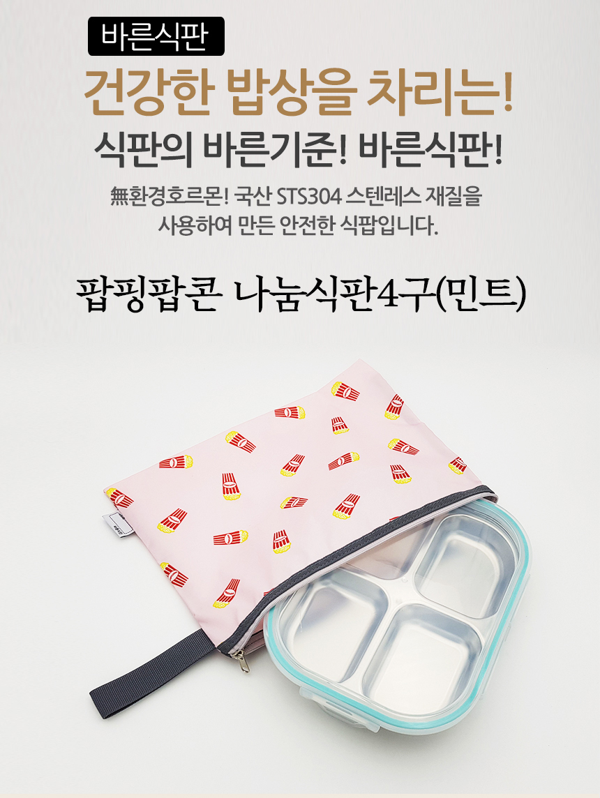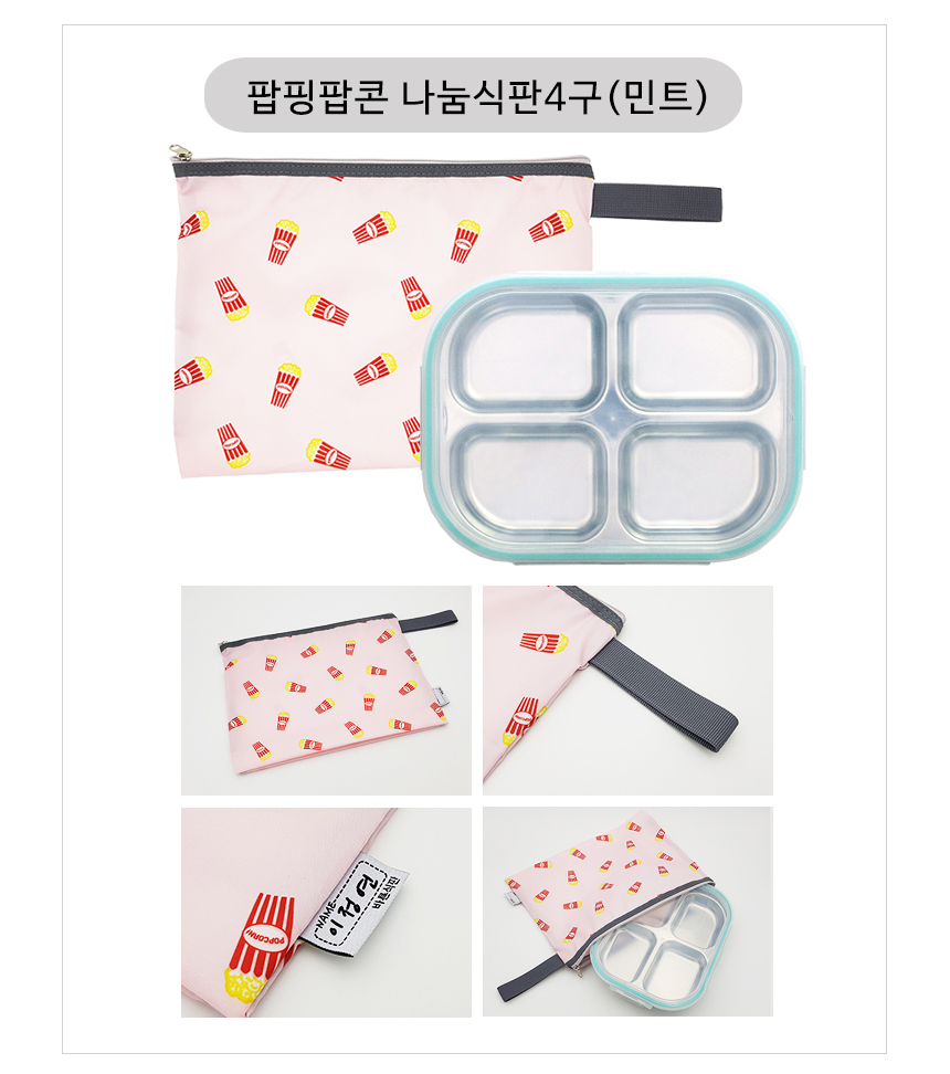 팝핑팝콘 민트 4구 4절 다이어트 찬합 도시락 식판