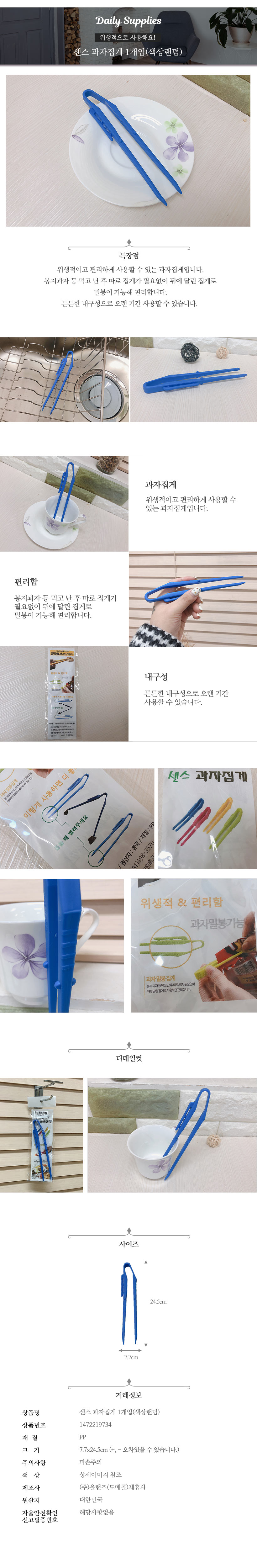 과자집게 1개입 색상랜덤 과자 다용도집게 과자젓가락 이미지/