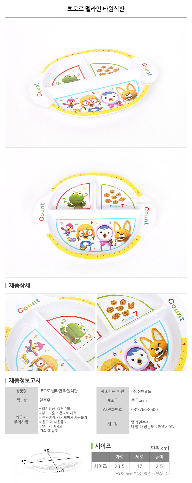 1. 품명 및 모델명 : 뽀로로 멜라민 타원식판
