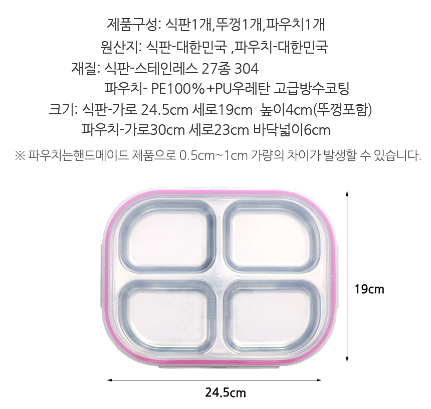 체리봉봉 핑크 4구 4절 나눔 다이어트 찬합 도시락 식 이미지/