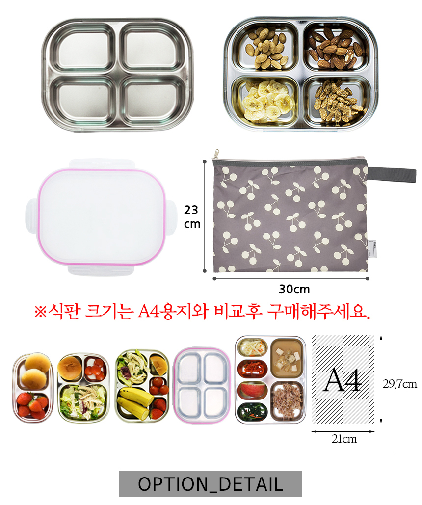 체리봉봉 핑크 4구 4절 나눔 다이어트 찬합 도시락 식