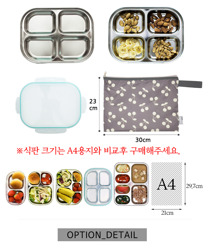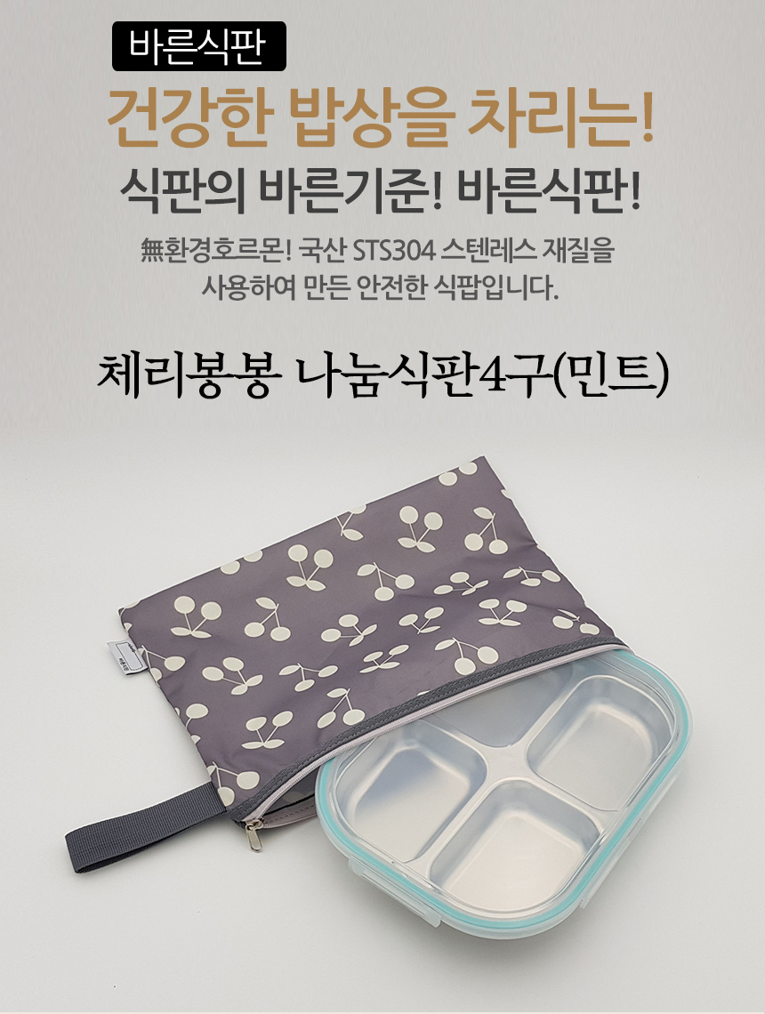 체리봉봉 민트 4구 4절 나눔 다이어트 찬합 도시락 식