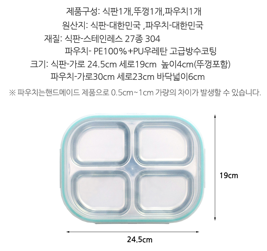 체리봉봉 민트 4구 4절 나눔 다이어트 찬합 도시락 식 이미지/
