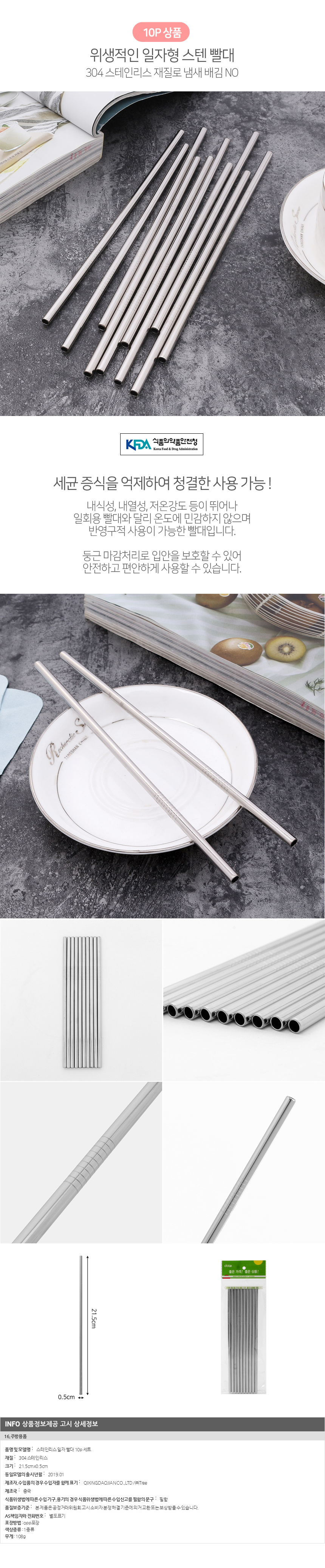 스테인리스 일자빨대 10p 세트(21.5x0.5cm)재사용빨대 이미지/