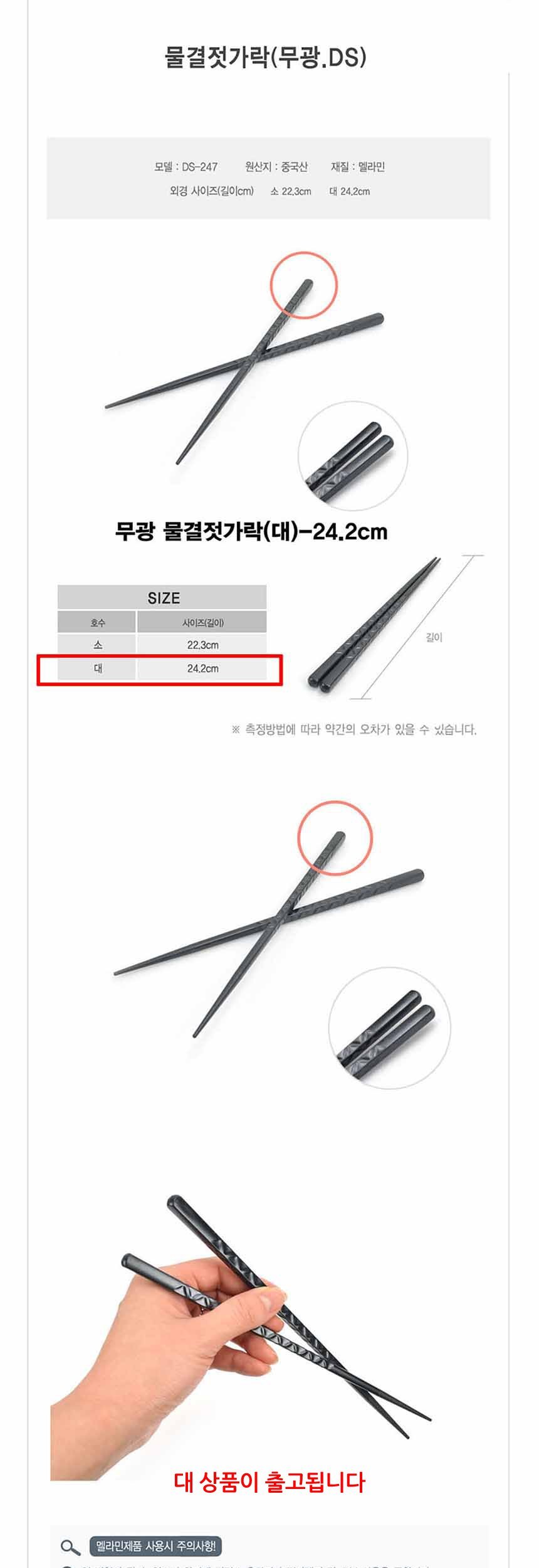 멜라민 무광 물결젓가락 대 24.2cm