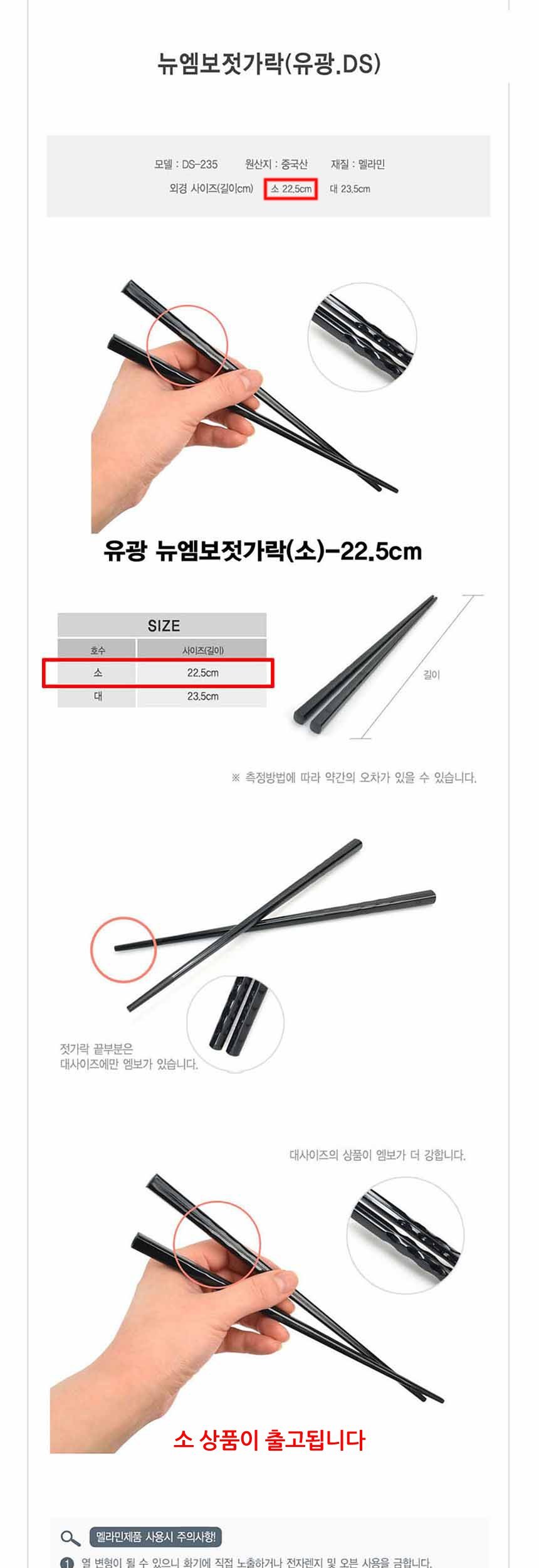 멜라민 유광 뉴엠보 젓가락 소 22.5cm