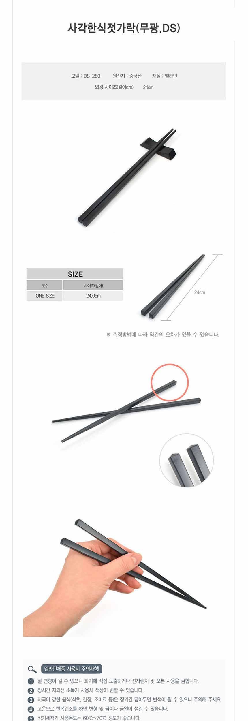멜라민 무광 사각 한식젓가락 24cm 이미지/
