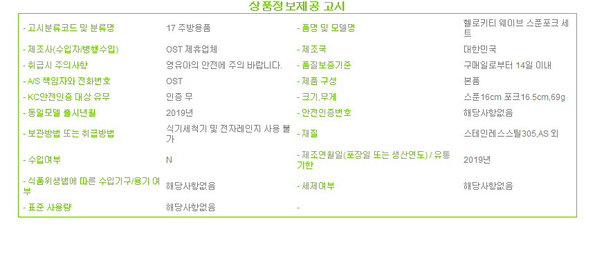 헬로키티 웨이브 스푼포크세트 유아식기 어린이