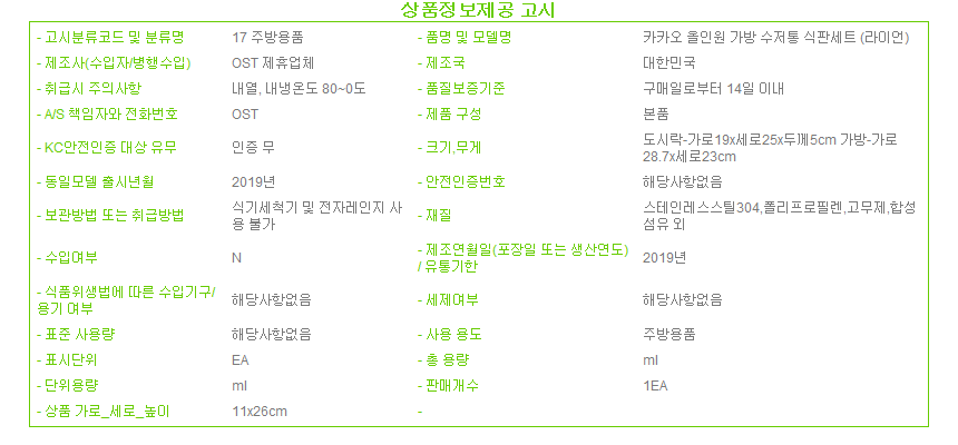 제조자 상품상세설명에 표기