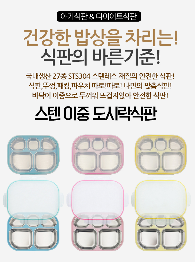 어린이집 유치원 유아 스텐 이중 도시락 식판