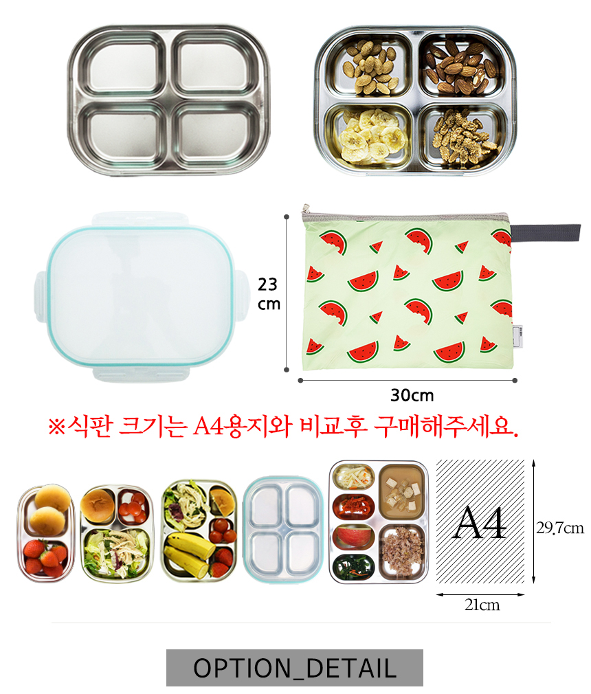 수박젤리 민트 4구 4절 다이어트 찬합 도시락 식판