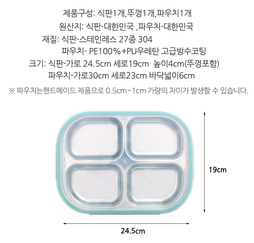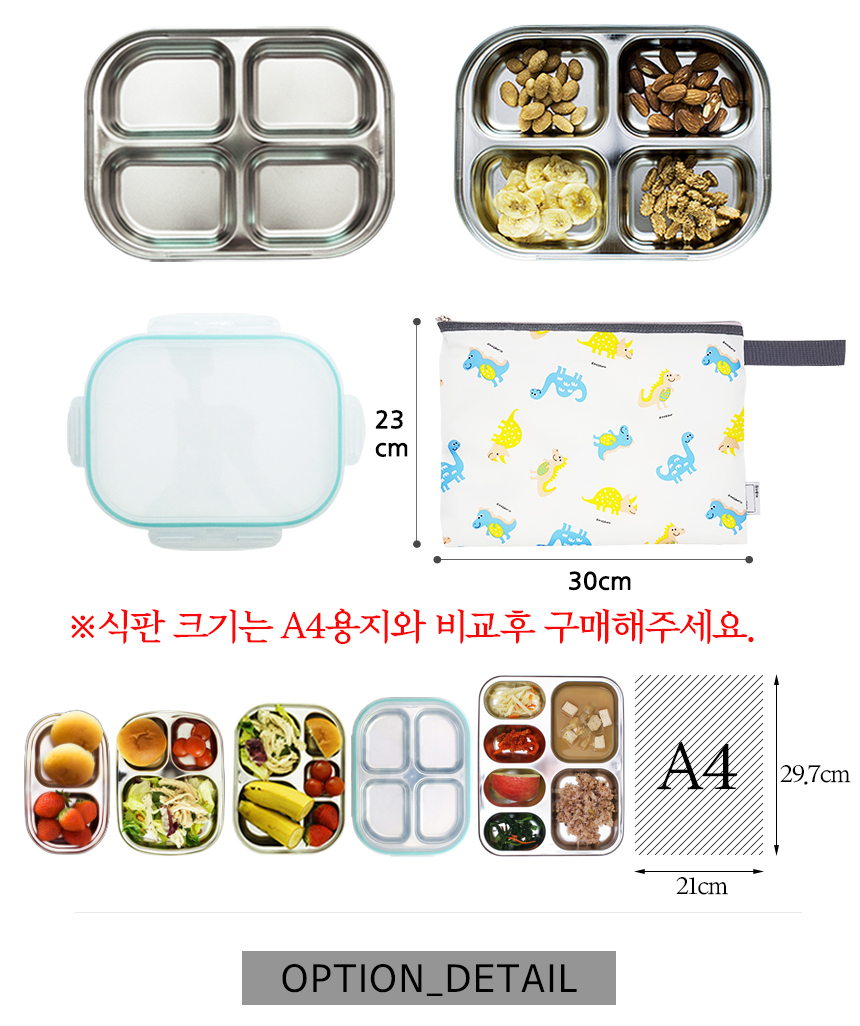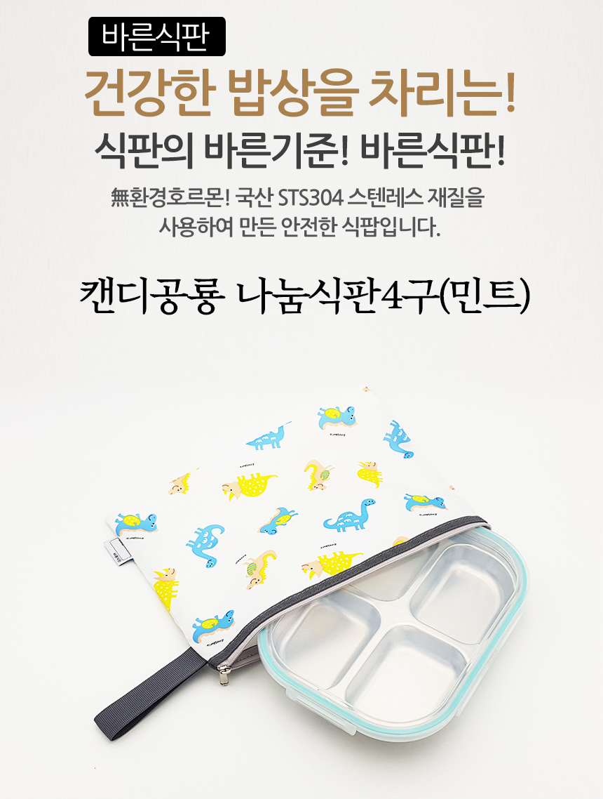 캔디공룡 민트 4구 4절 다이어트 찬합 도시락 식판