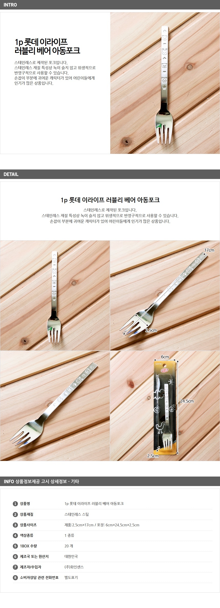 1. 품명 및 모델명 : 1p 롯데 이라이프 러블리 베어 아동포크