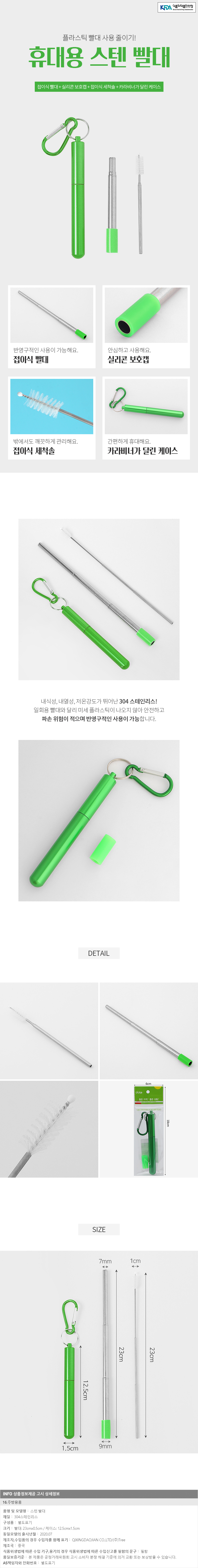반영구 스테인리스 길이조절 휴대용 빨대(23cm)(그린) 이미지/