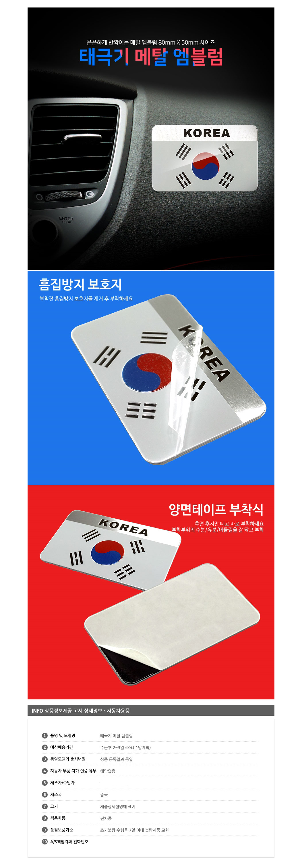 OSN 태극기 메탈 엠블럼 80mm X 50mm 자동차 튜닝