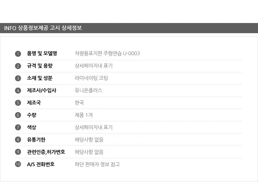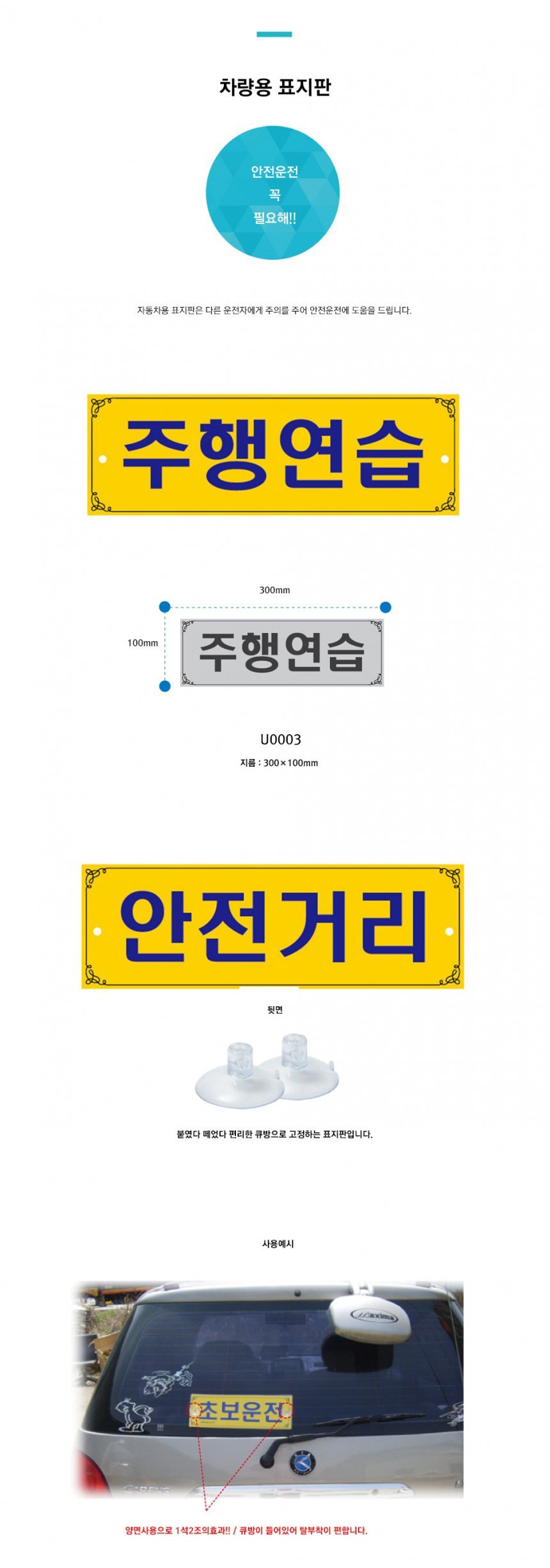 차량용표지판 주행연습 U-0003 300x100mm 양면