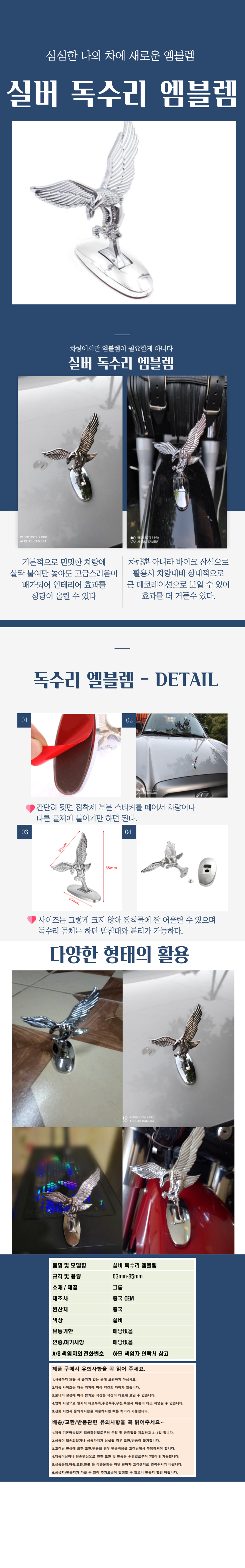 [도매상가] 자동차 바이크 장식 실버 독수리 엠블럼 장식모형 스티커 엠블렘 이미지/