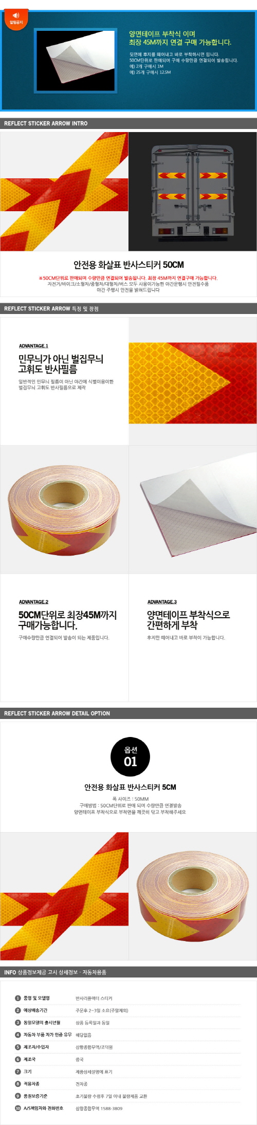 안전제일 안전용 고휘도 화살표 반사스티커 리플렉터 테이프