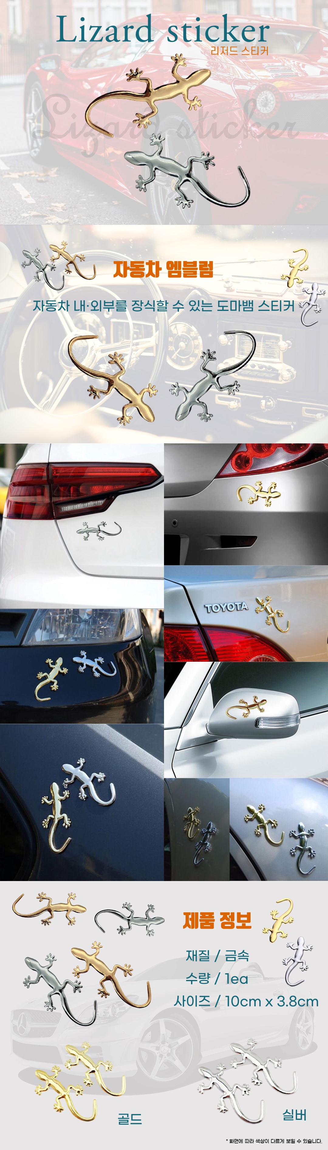 [도매상가] 도마뱀 스티커 3D 입체 자동차 튜닝 엠블럼 차량용 Audi 아우디 콰트로 데 이미지/