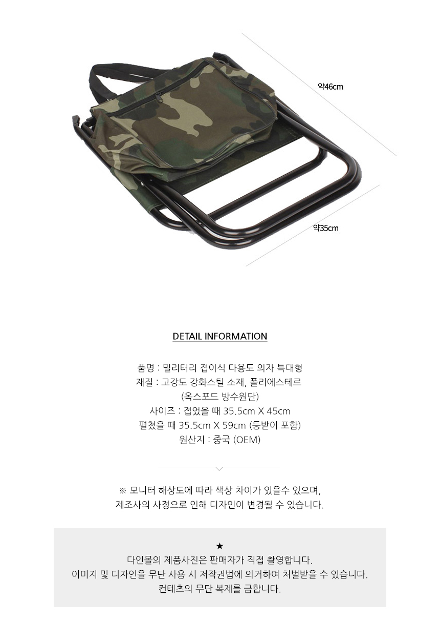 밀리터리 접이식 휴대용 의자 등산 낚시 캠핑 이미지/