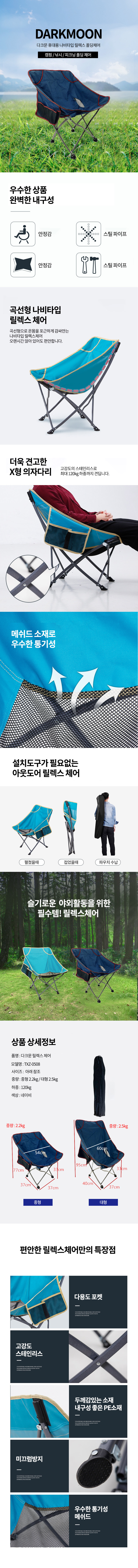 1. 품명 및 모델명 : 캠핑의자 / DARKMOON 휴대용 나비타입 릴렉스 폴딩체어