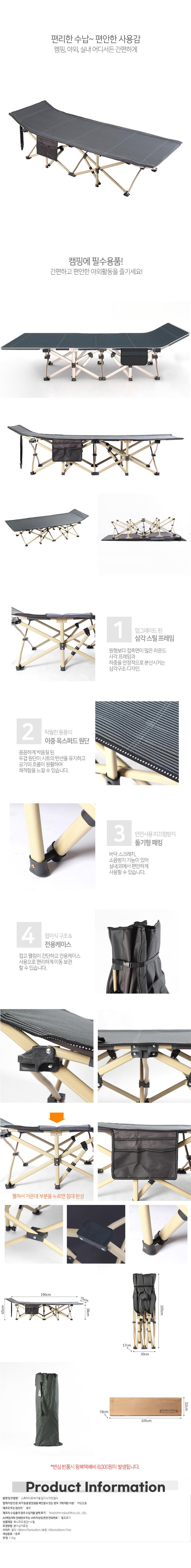 수납포켓 접이식 야전침대 블랙 야외의자 간이의자