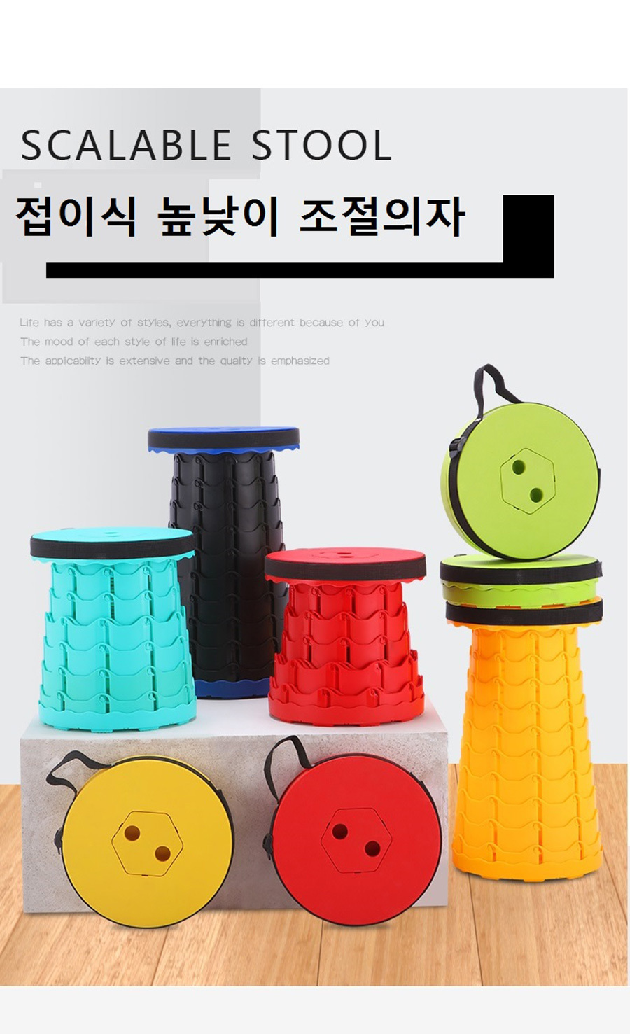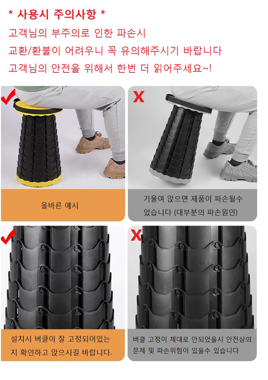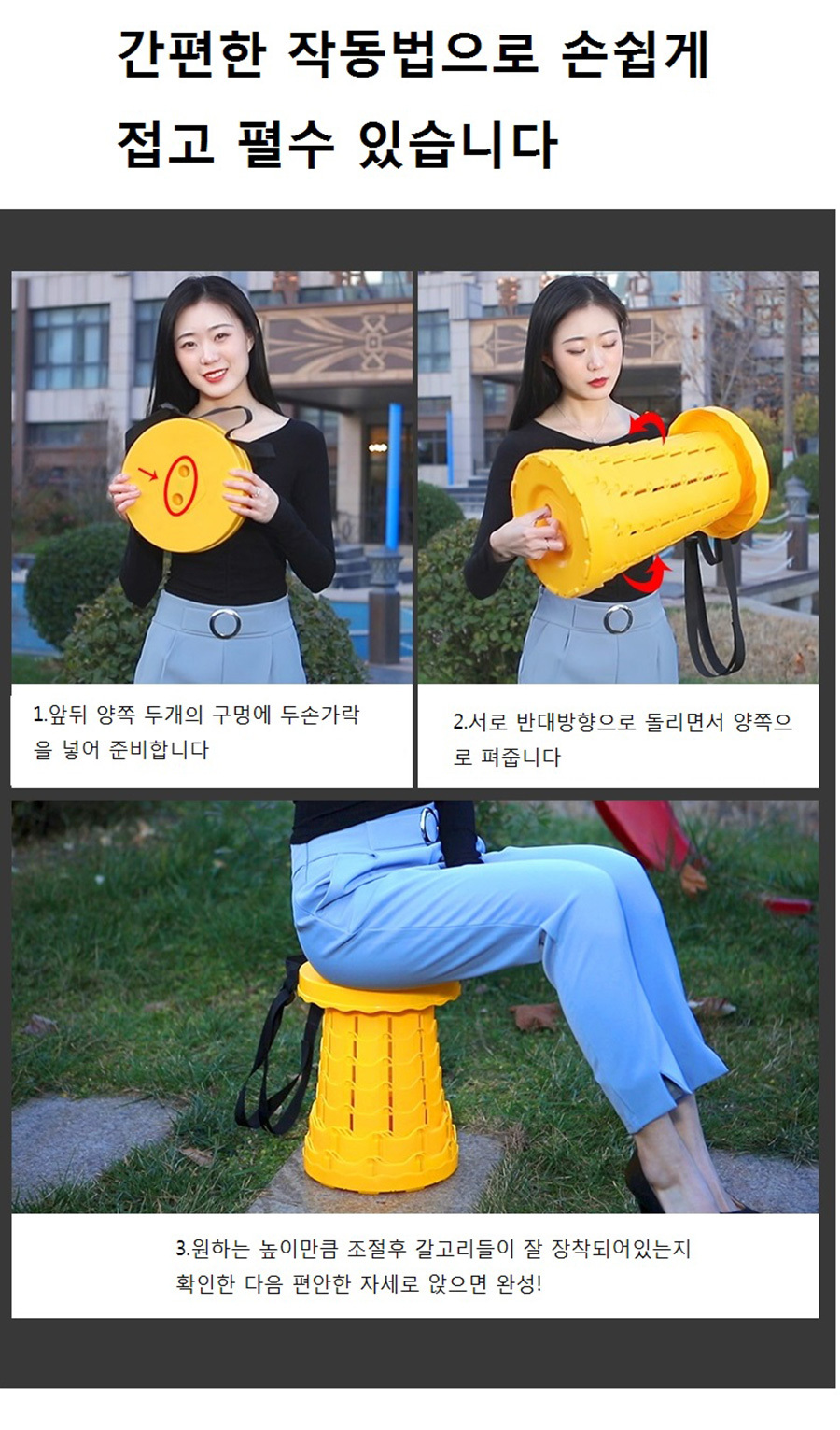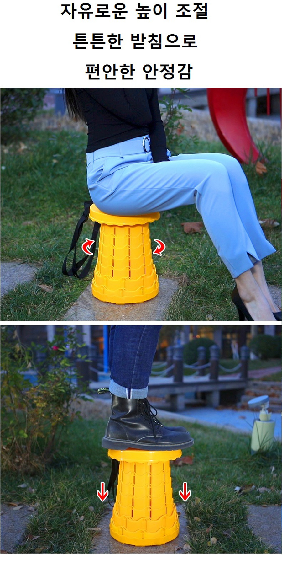 휴대용 접이식 높이 조절의자 다양한 공간활용 자유로운 높이조절 편안한 안정감