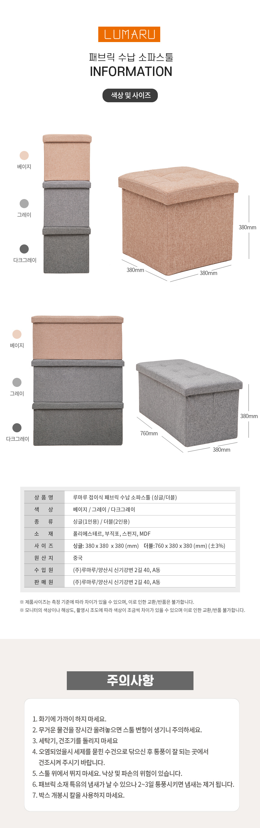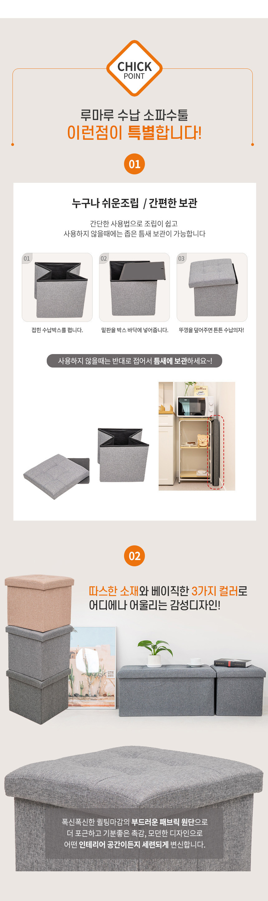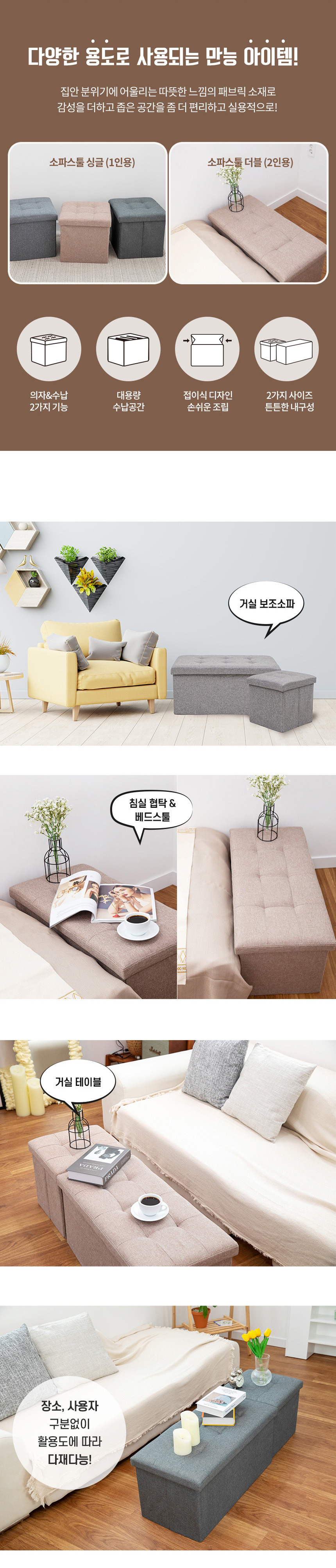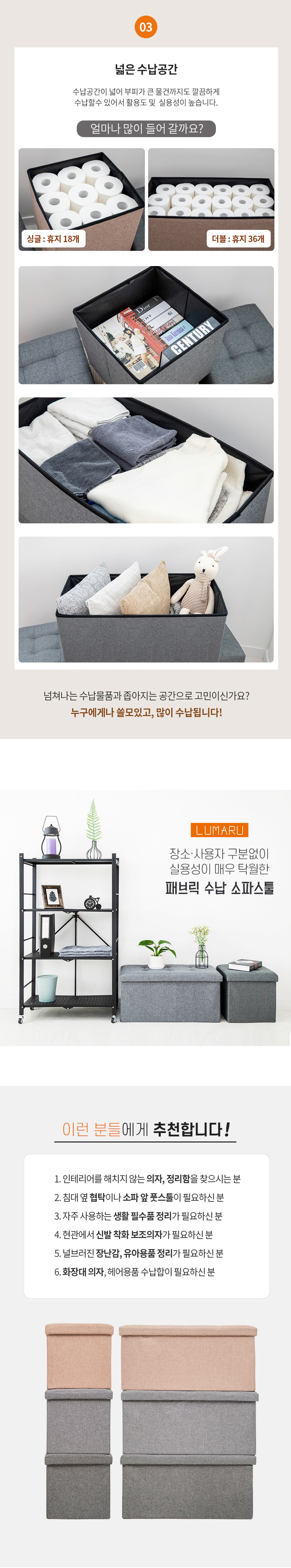 루마루 패브릭 수납스툴 싱글 큐브형 라이트그레이 4P 이미지/