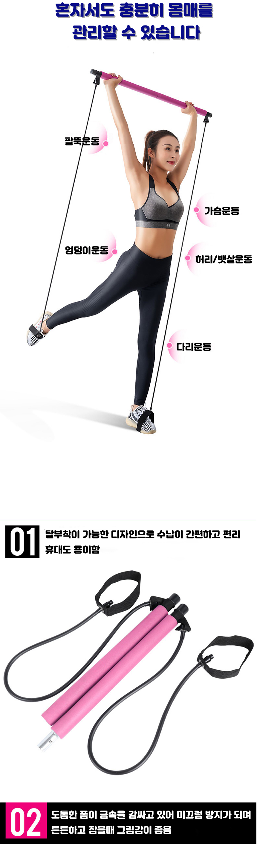 필라테스튜빙밴드 다기능 요가봉 홈트레이닝할수있는 기구 이미지/