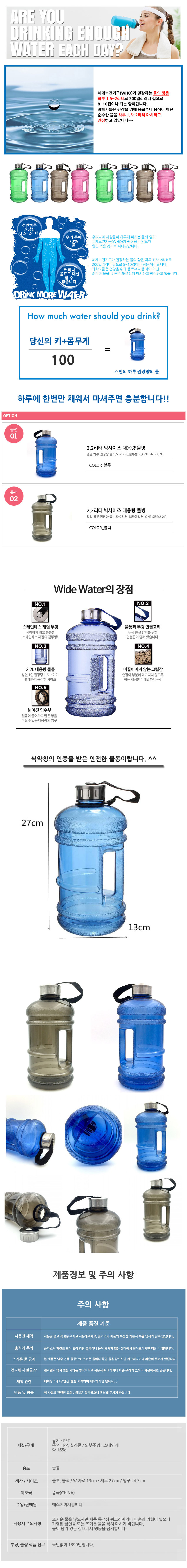 모델명 2.2리터 물병