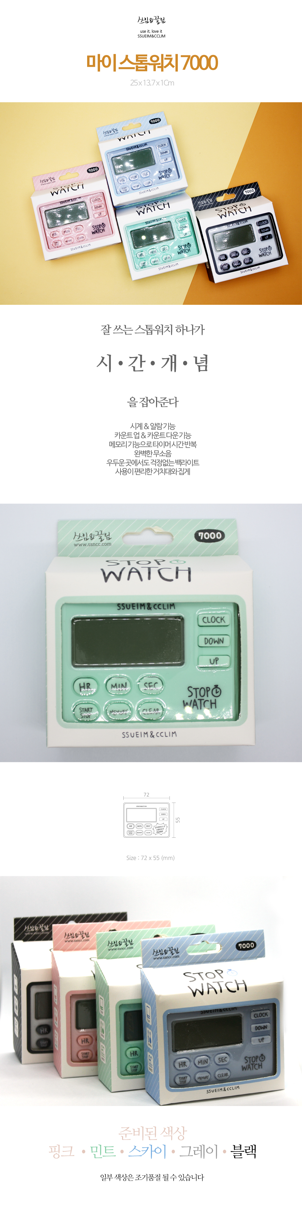 쓰임앤끌림 마이 스톱워치 7000 - 색상 렌덤 발송 이미지/