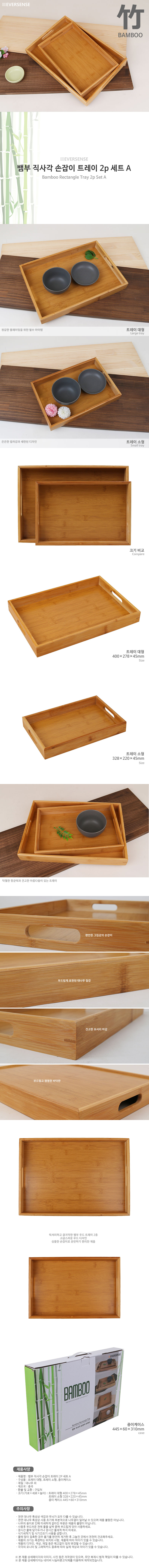 뱀부 직사각 손잡이 트레이 2p 세트 A