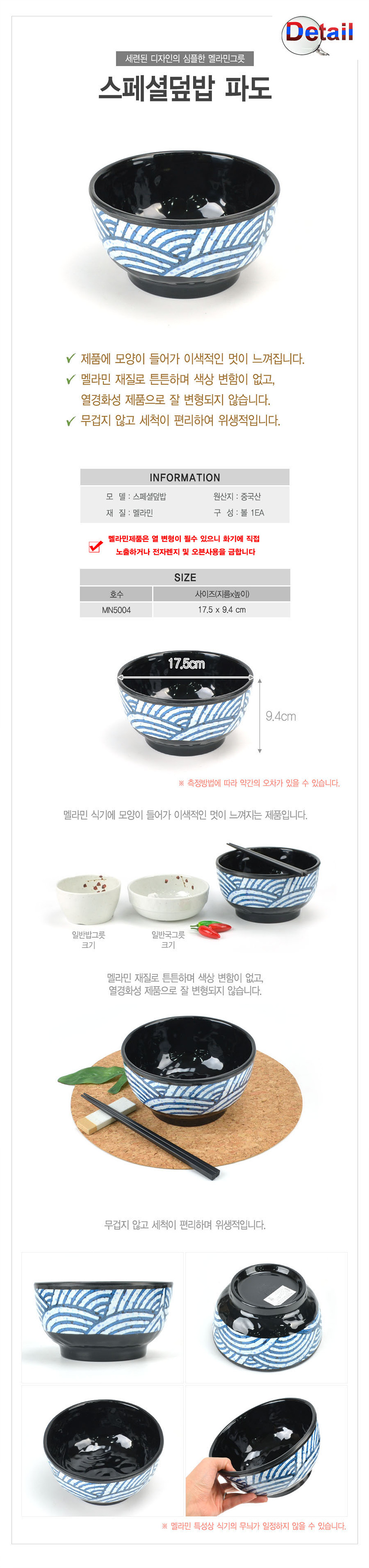 파도덮밥공기 일식공기 대접그릇-17.5cm 이미지/