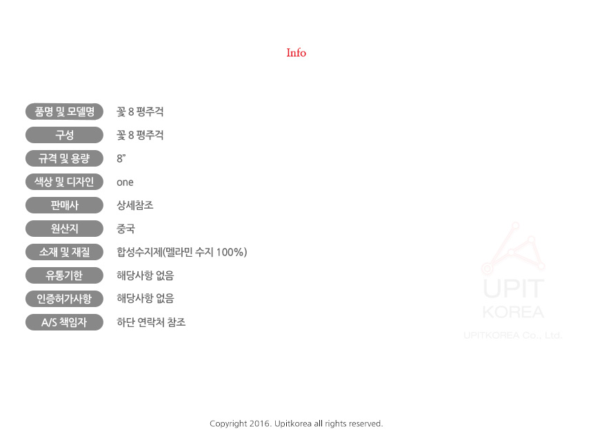 • 반품/환불조건: 도착후 1주일 이내 사용하지 않은 상태에서 가능합니다,초기제품 이상의 경우 동일한 제품으로 1:1 교환원칙, 사용후 제품이상은 A/S를 원칙으로 합니다,