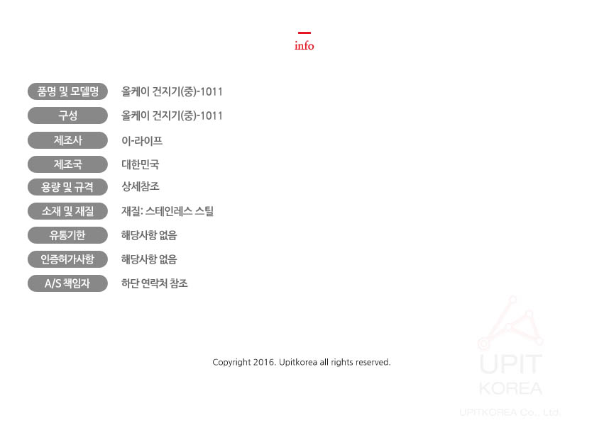 1. 품명 및 모델명 : 상세정보 별도표기