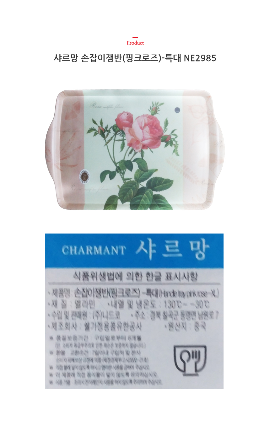 샤르망 손잡이쟁반(핑크로즈)-특대 NE2985 이미지/