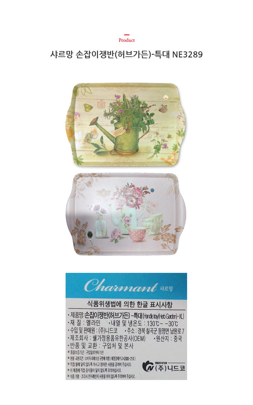 샤르망 손잡이쟁반(허브가든)-특대 NE3289 이미지/