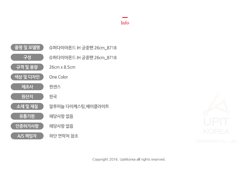 슈퍼다이아몬드 IH 궁중팬 26cm 8718 이미지/